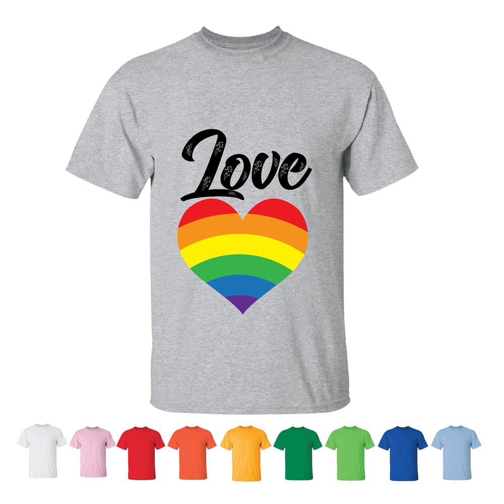 Pride month rainbow heart Gay LGBT Men Women White Gray T shirt