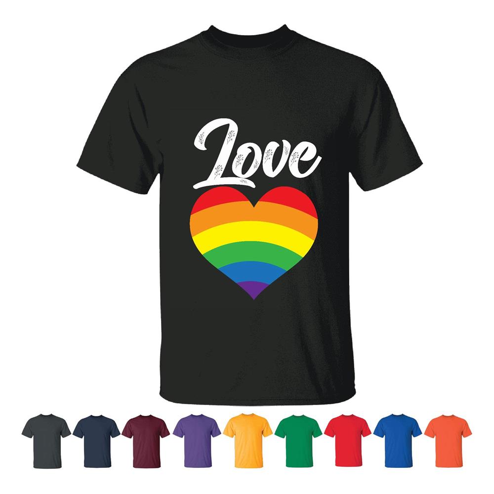 Pride month rainbow heart Gay LGBT Men Women Black T shirt