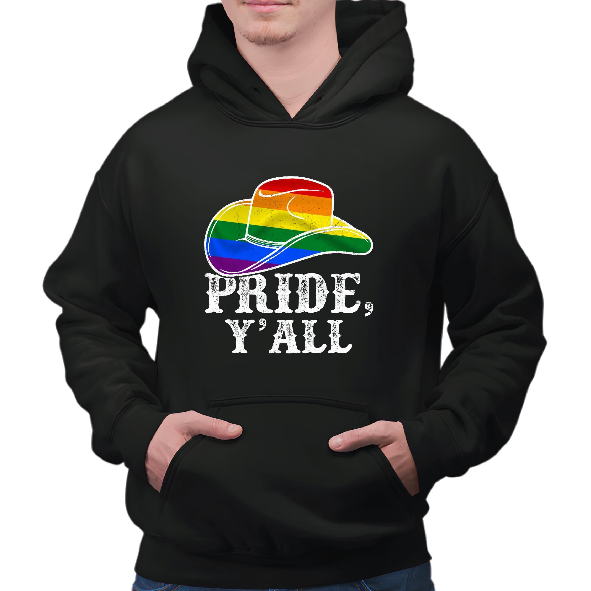 Pride y all Cowboy Cowgirl Hat LGBT for LGBT community Black and Muticolor Unisex Hoodie