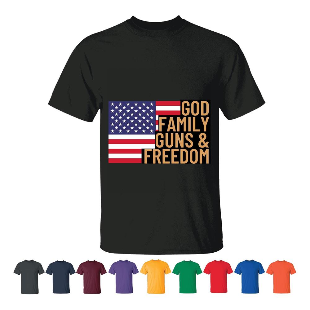 Pro Gun Vintage USA Flag Gift Idea for God Family Guns and Freedom Supporters Men Women Black T shirt
