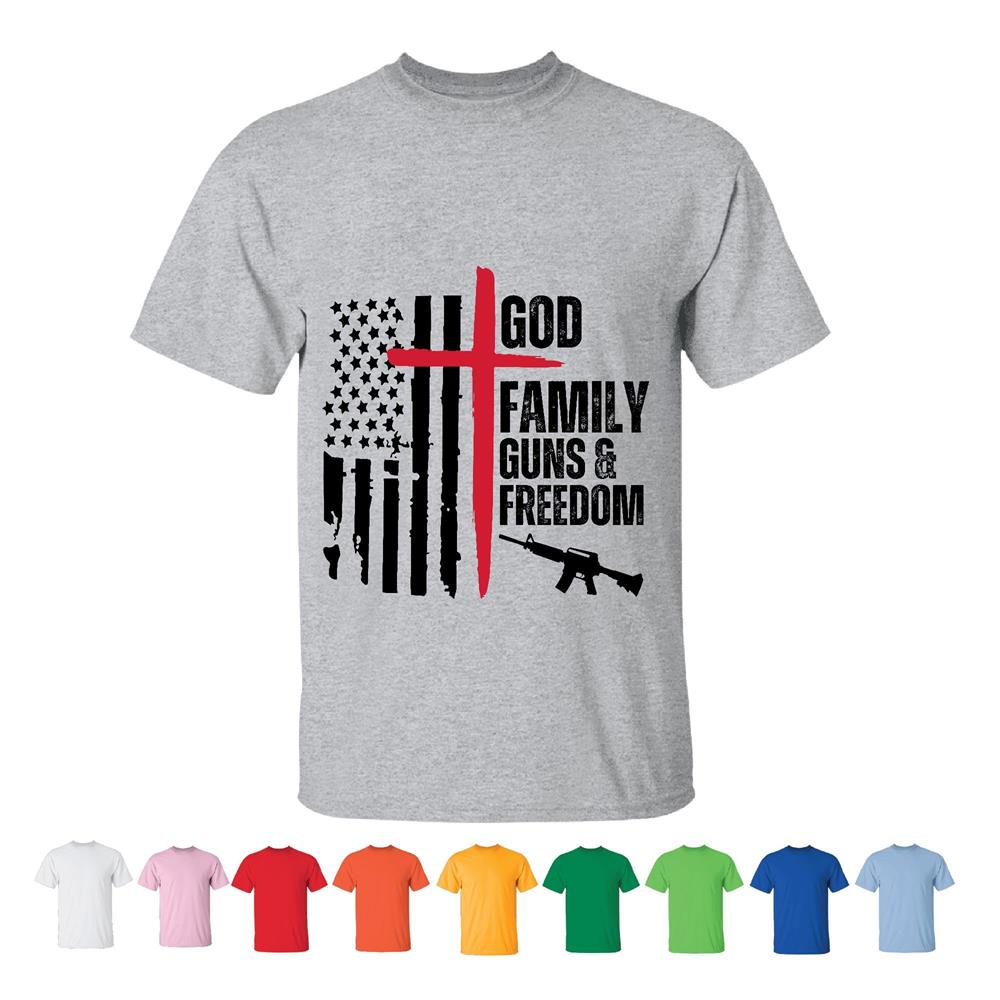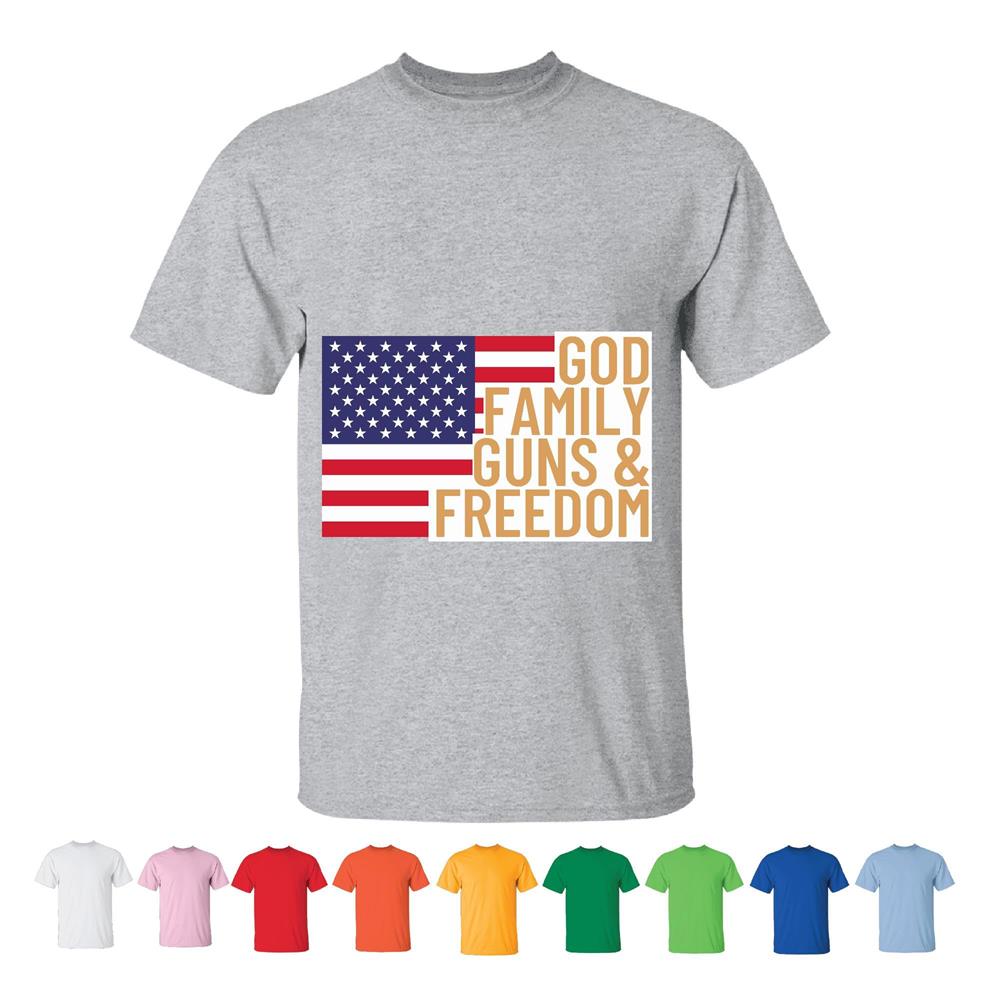 Pro Gun Vintage USA Flag Gift Idea for God Family Guns and Freedom Supporters Men Women White Gray T shirt
