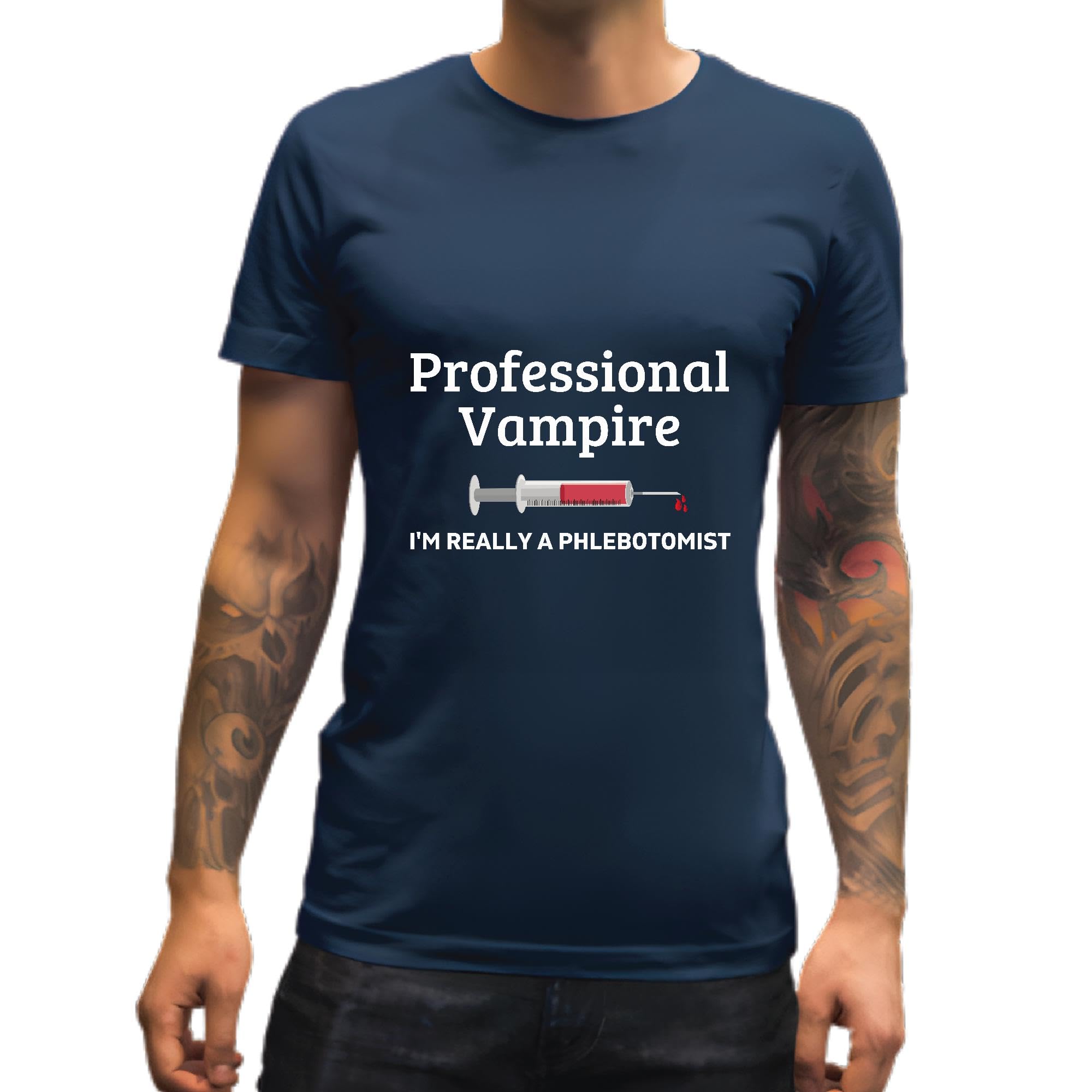 Professional Vampire Phlebotomist for Blood Syringe Lovers Character Humor Men Women Navy Multicolor T shirt