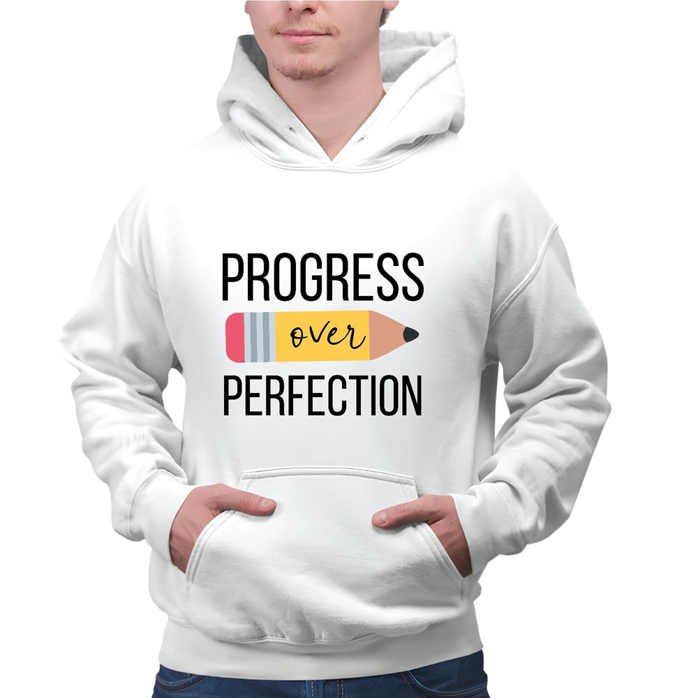 Progress over Perfection Kindergarten Teacher Gray and Muticolor Unisex Hoodie