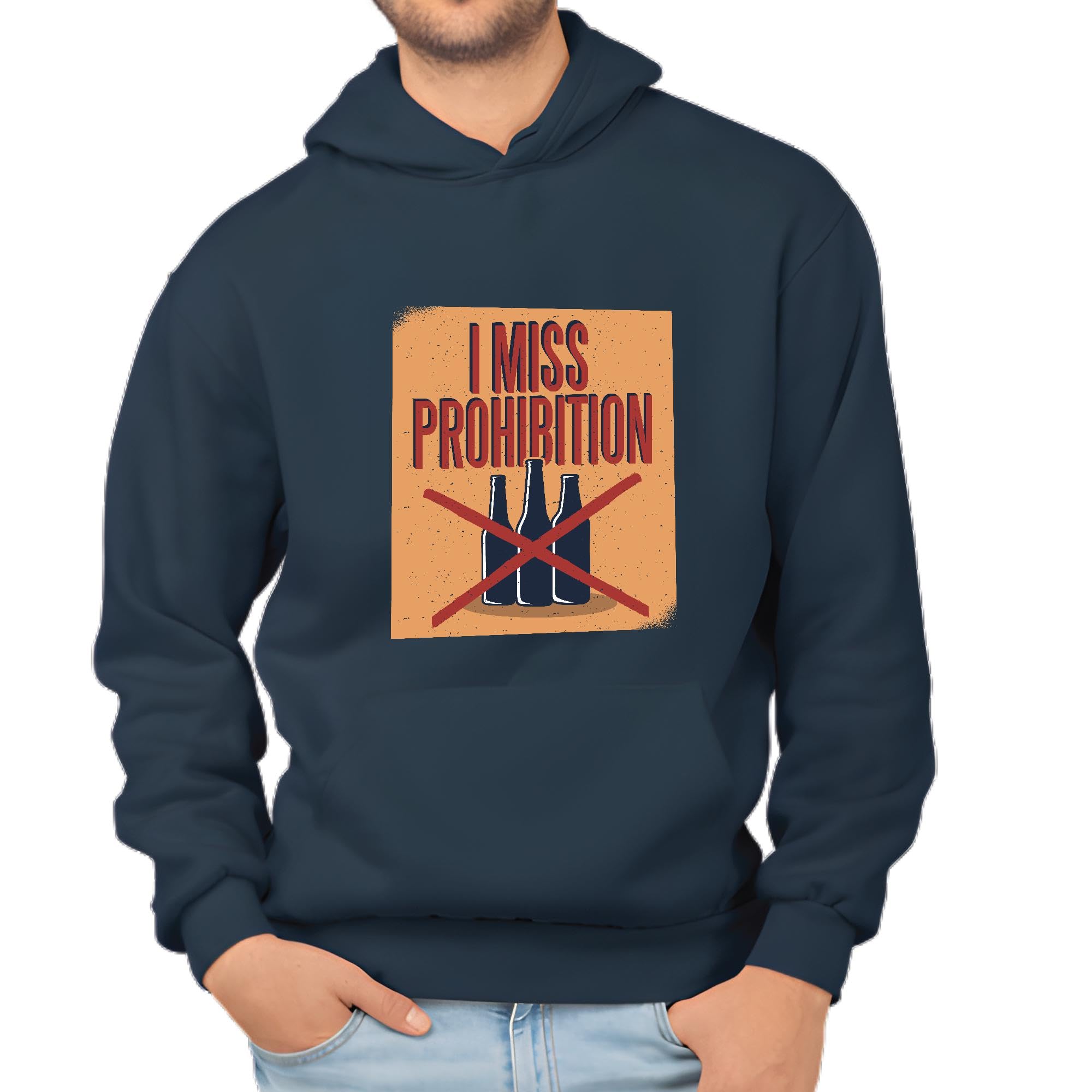 Prohibition Era Gift Alcohol Prohibition Scratched Beer Bottles for Beer Lovers Navy and Muticolor Unisex Hoodie