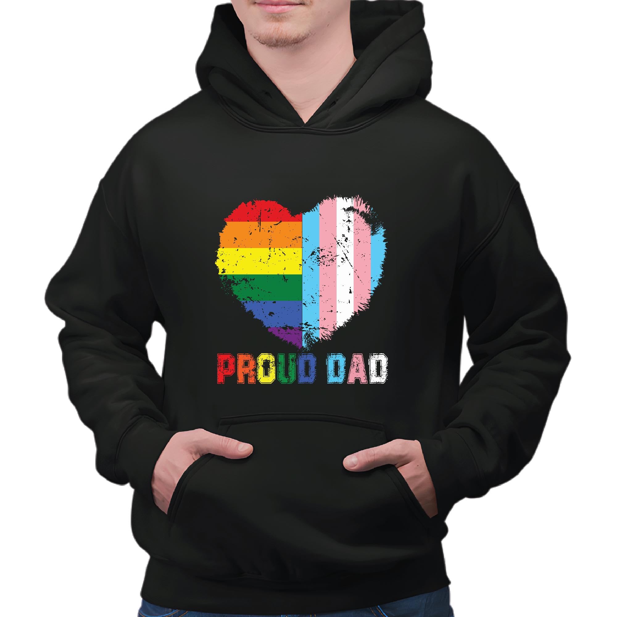 Proud Dad Transgender Gay Rainbow LGBT Black and Muticolor Unisex Hoodie