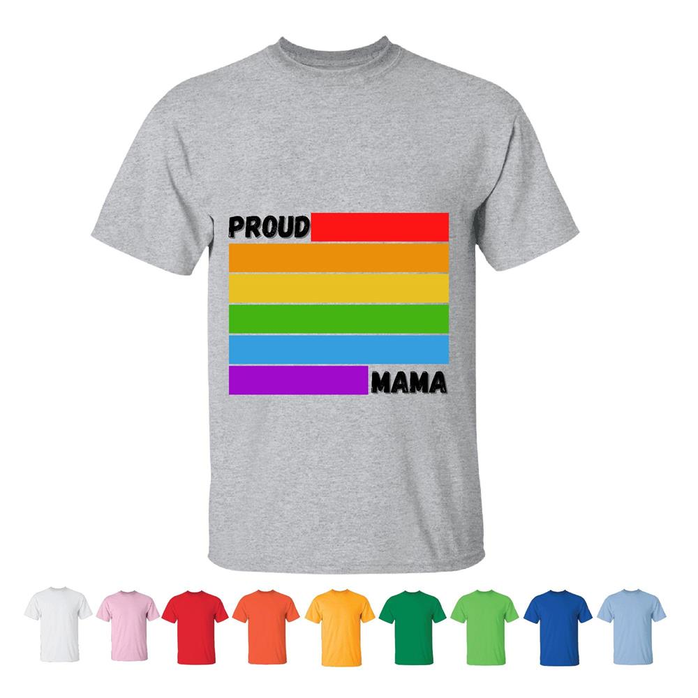 Proud Mama flag rainbow LGBT Gay Lesbian pride Men Women White Gray T shirt