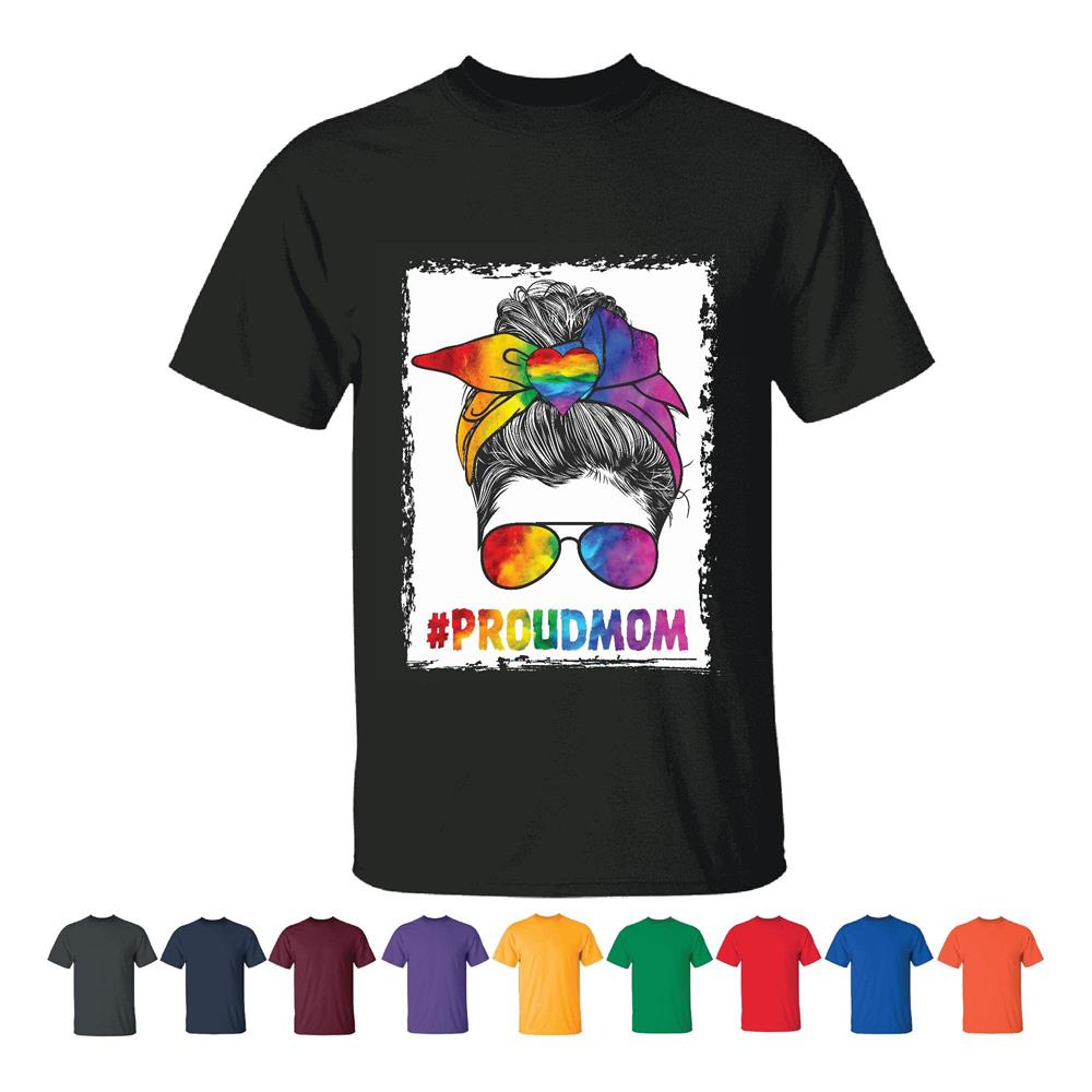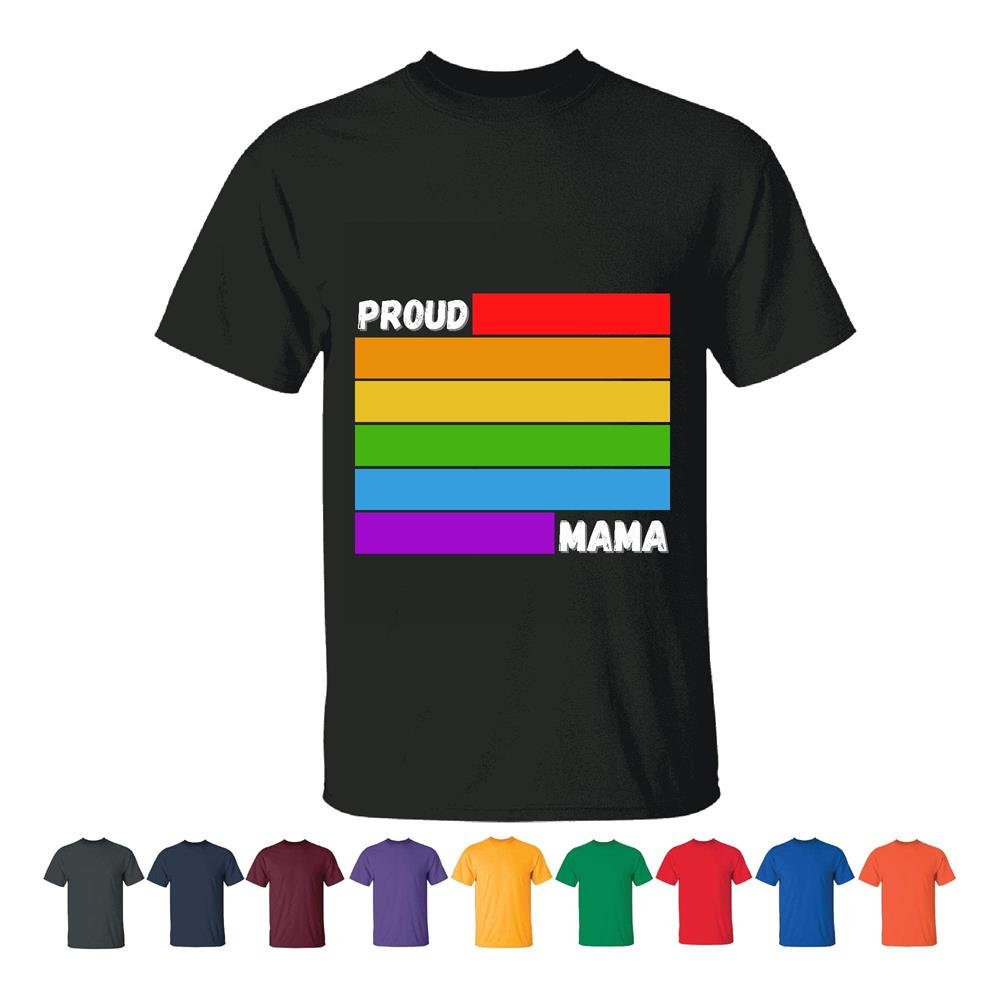 Proud Mama flag rainbow LGBT Gay Lesbian pride Men Women Black T shirt
