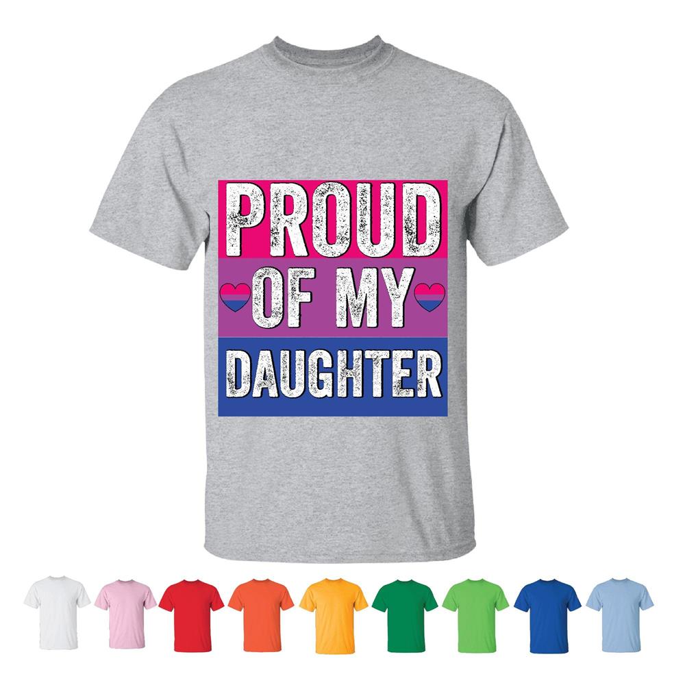Proud Mom or Dad of a Bisexual Daughter for LGBT Pride and Family Support Men Women White Gray T shirt