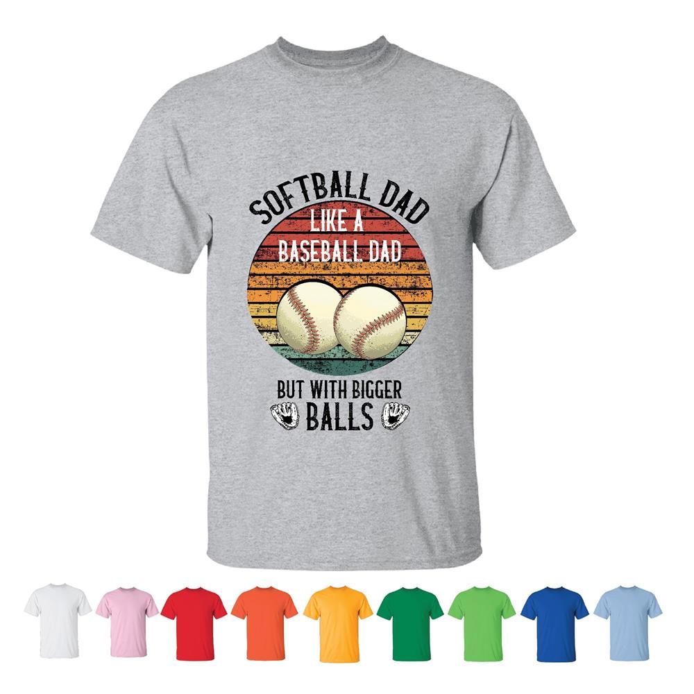 Proud of Softball Dad like a Baseball Dad but a bigger Ball funny for Sport Lover Men Women White Gray T shirt