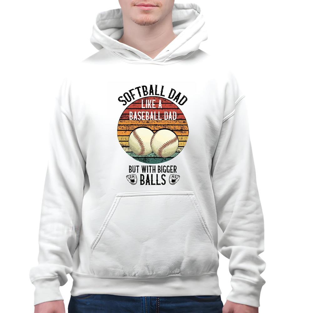 Proud of Softball Dad like a Baseball Dad but a bigger Ball funny for Sport Lover White and Muticolor Unisex Hoodie