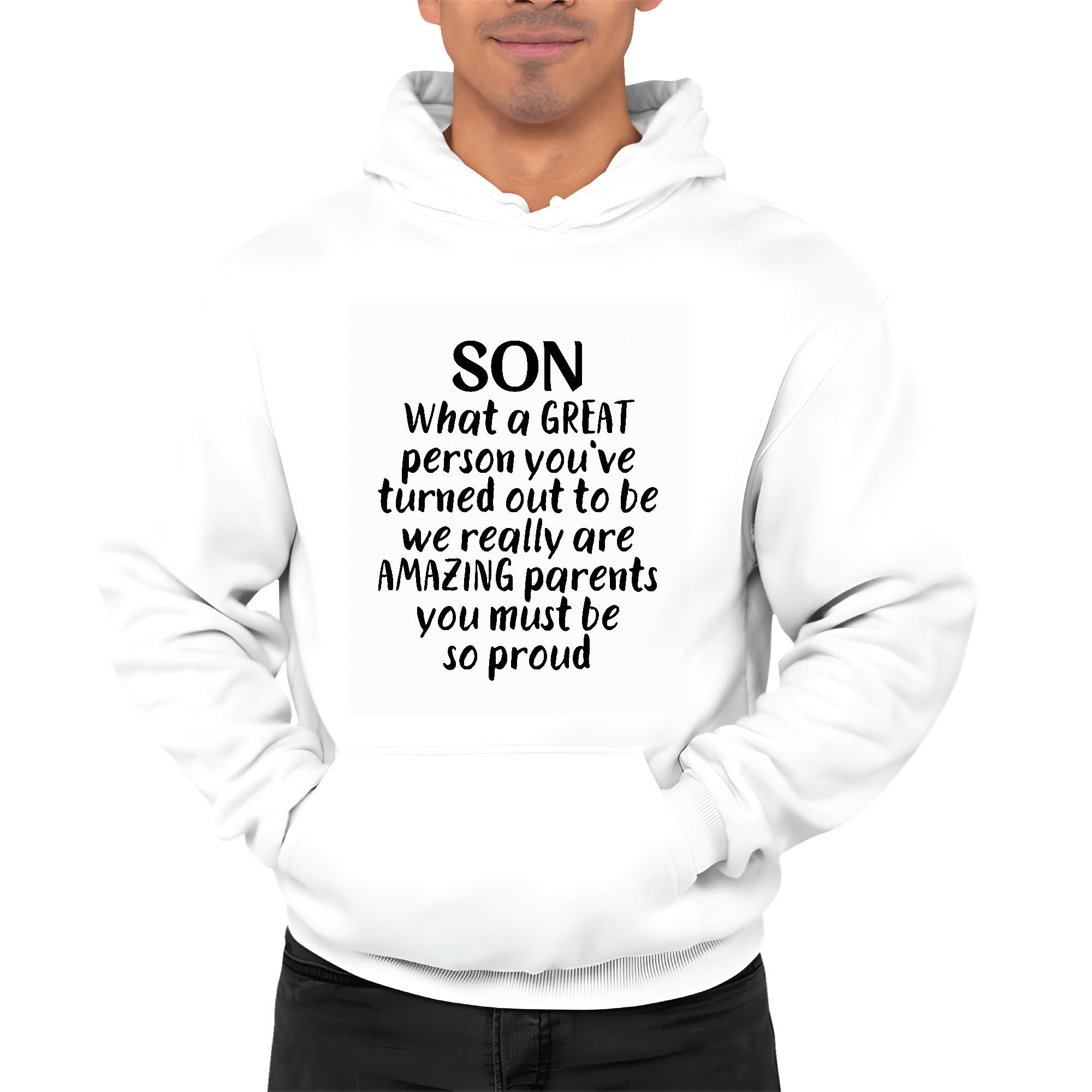 Proud Parents Gift for Son to Celebrate His Success White and Muticolor Unisex Hoodie