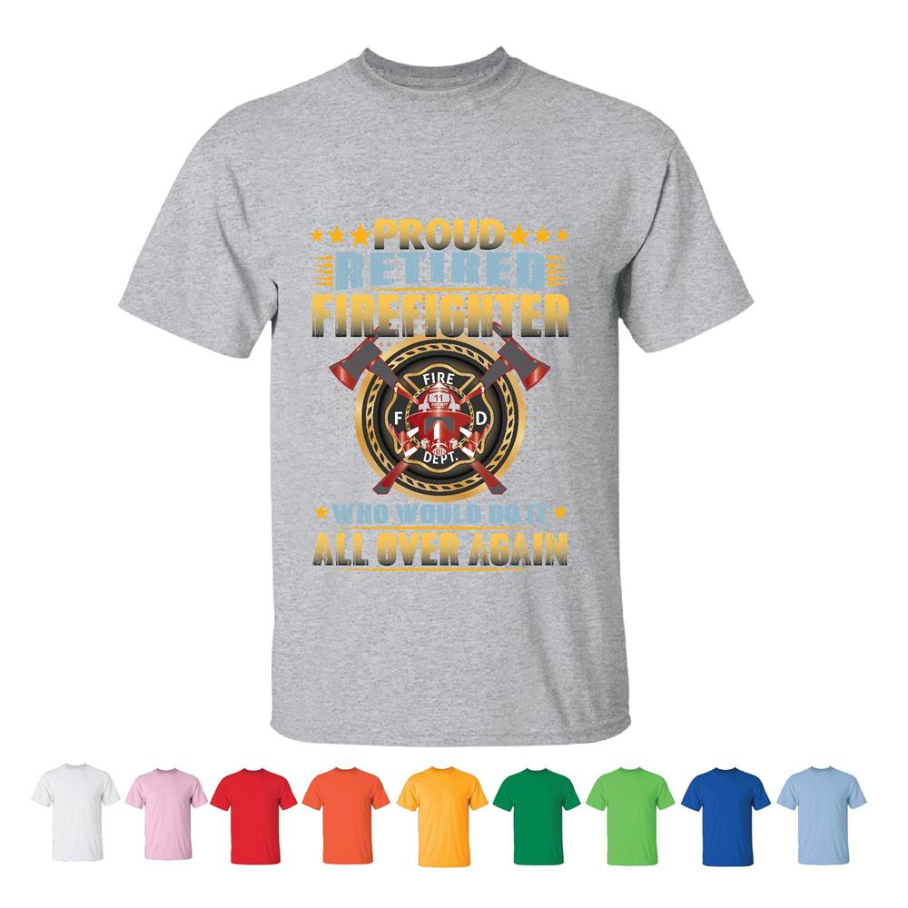 Proud Retired Firefighter who would do it again for Fireman flame fighter Men Women White Gray T shirt
