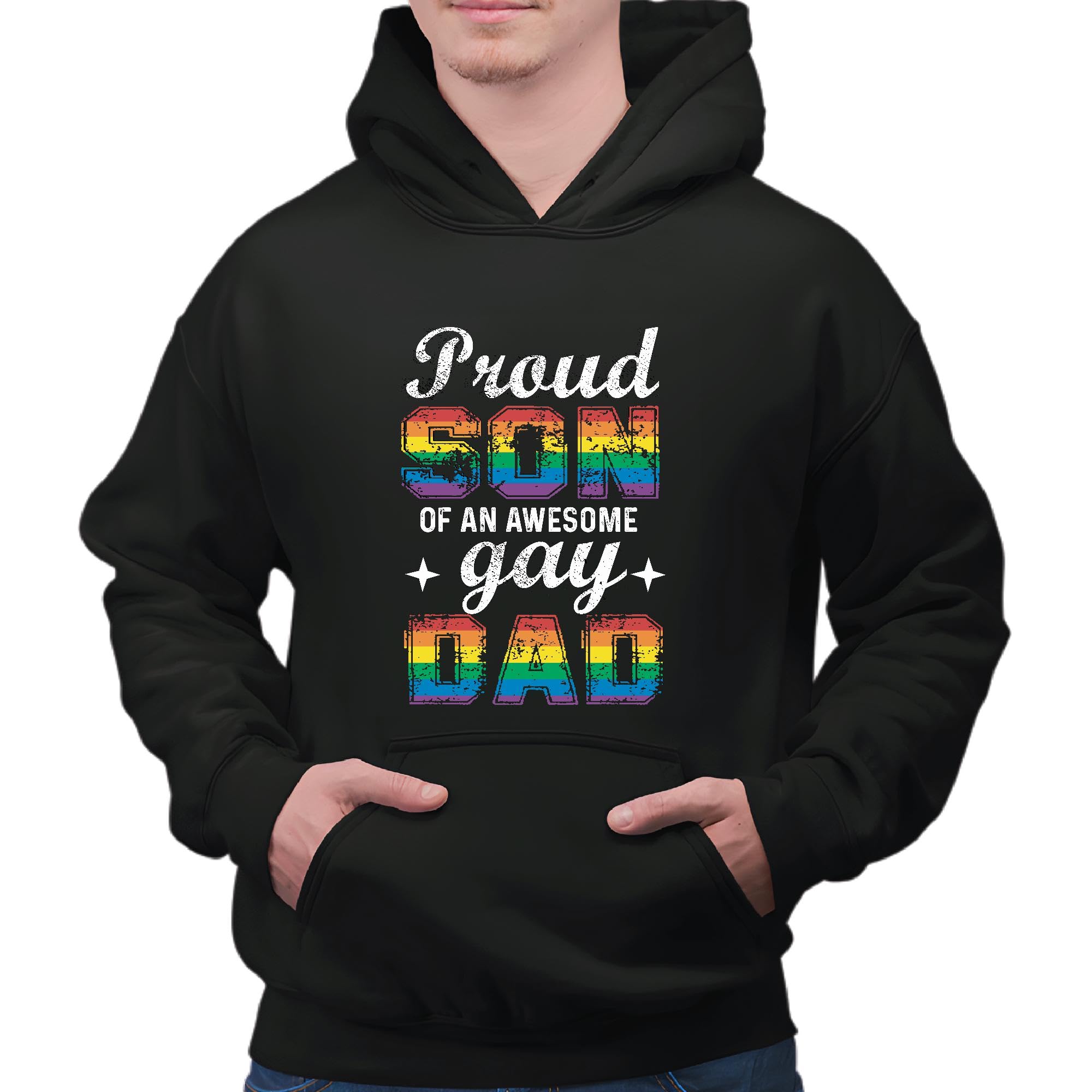 Proud Son of an awesome Gay Dad rainbow LGBT pride Black and Muticolor Unisex Hoodie