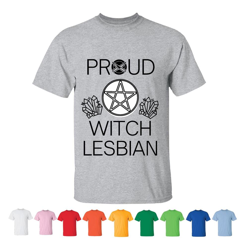 Proud Witch Lesbian funny for LGBT community Men Women White Gray T shirt