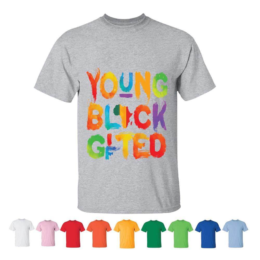 Proud to be Young Tee Gifted and Black Black History Month for Men Women and Kids Men Women White Gray T shirt