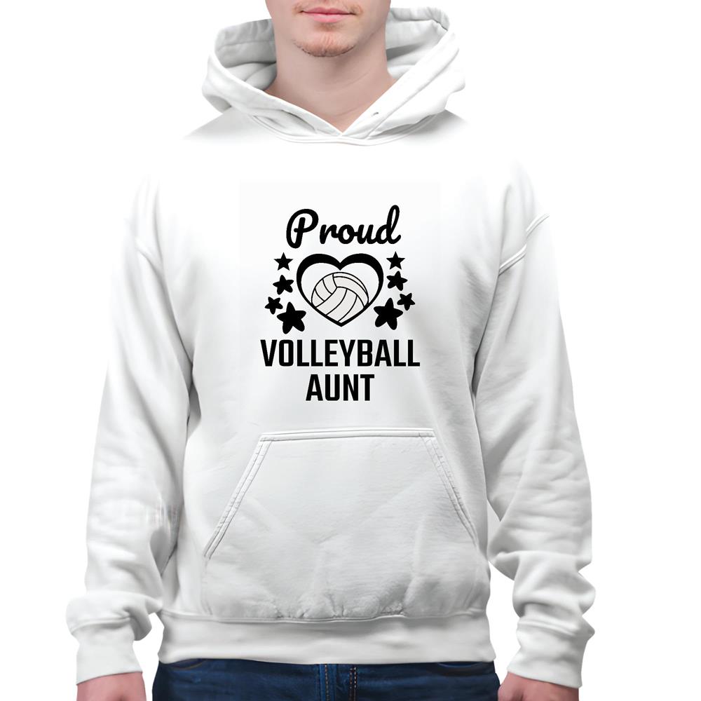 Proud Volleyball Aunt Heart for Volleyball Player White and Muticolor Unisex Hoodie