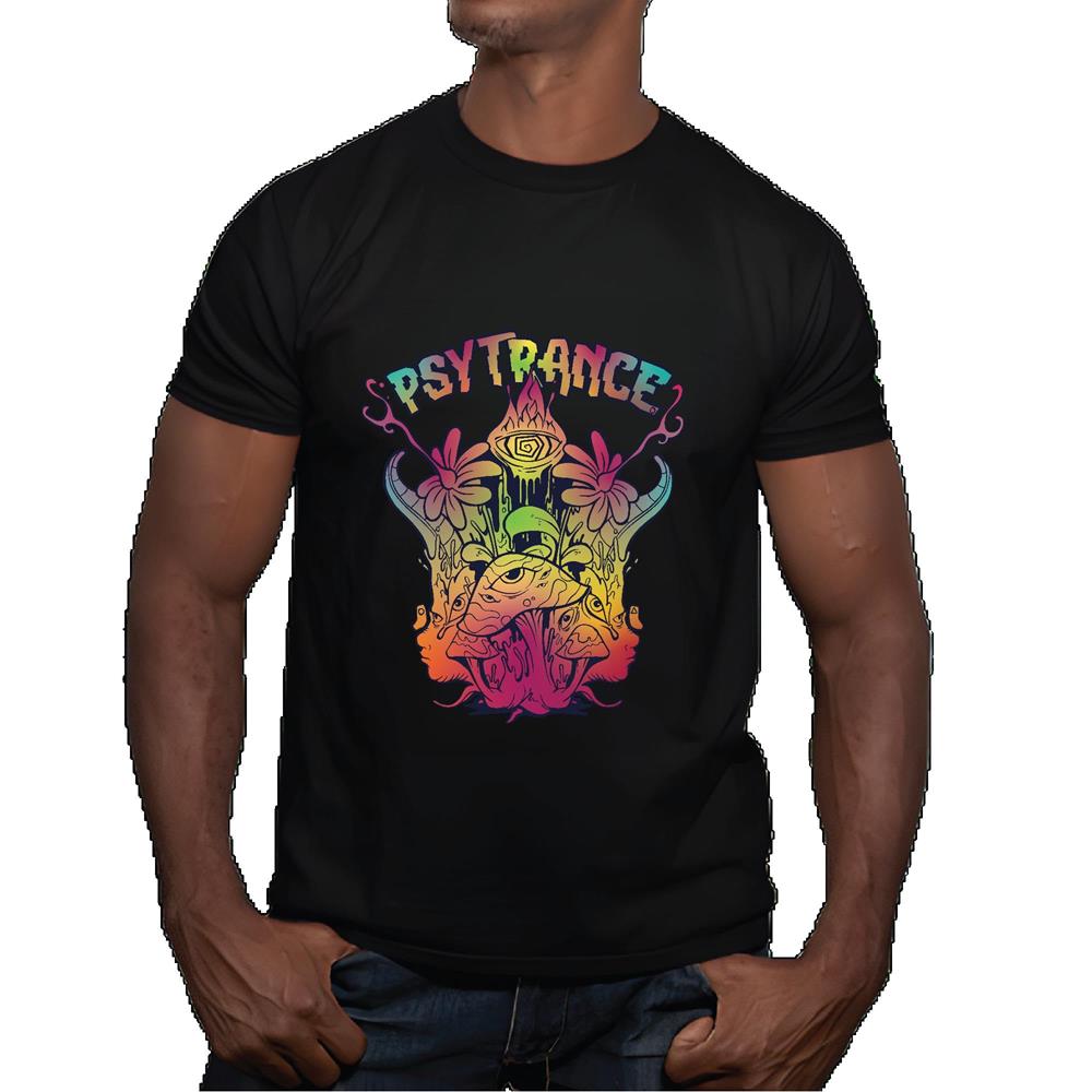 Psychedelic Gift for Psytrance Fans Mushroom Illustration Men Women Black Multicolor T shirt