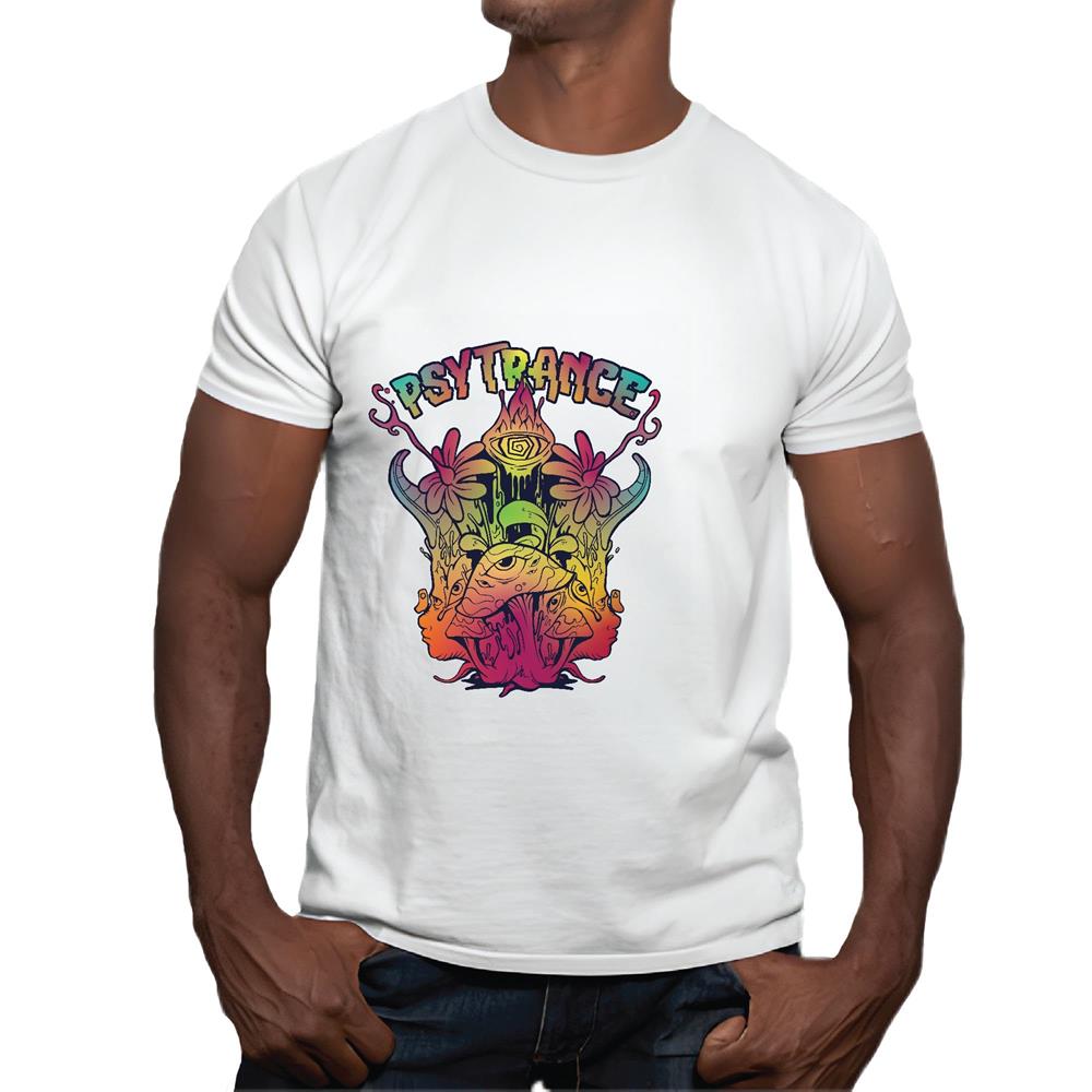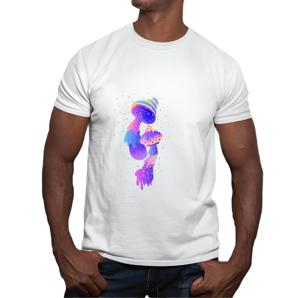 Psychedelic Gift for Psytrance Fans Mushroom Illustration Men Women White Gray Multicolor T shirt