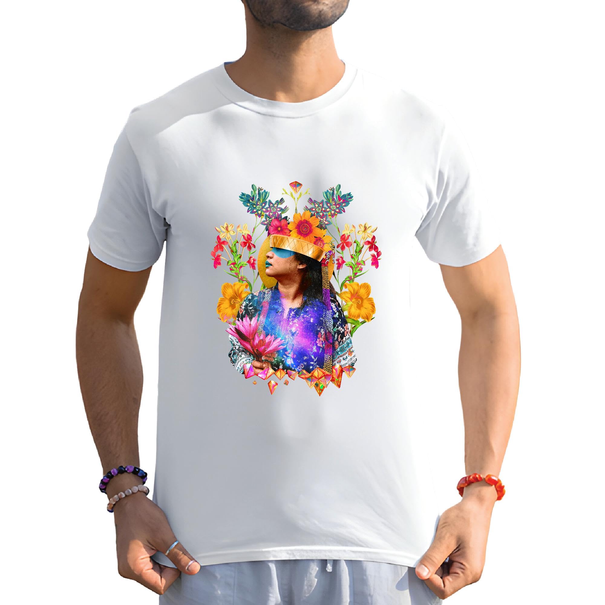 Psychedelic Flower Collage Gift for Girls Unique and Creative Present Idea Men Women White Gray Multicolor T shirt