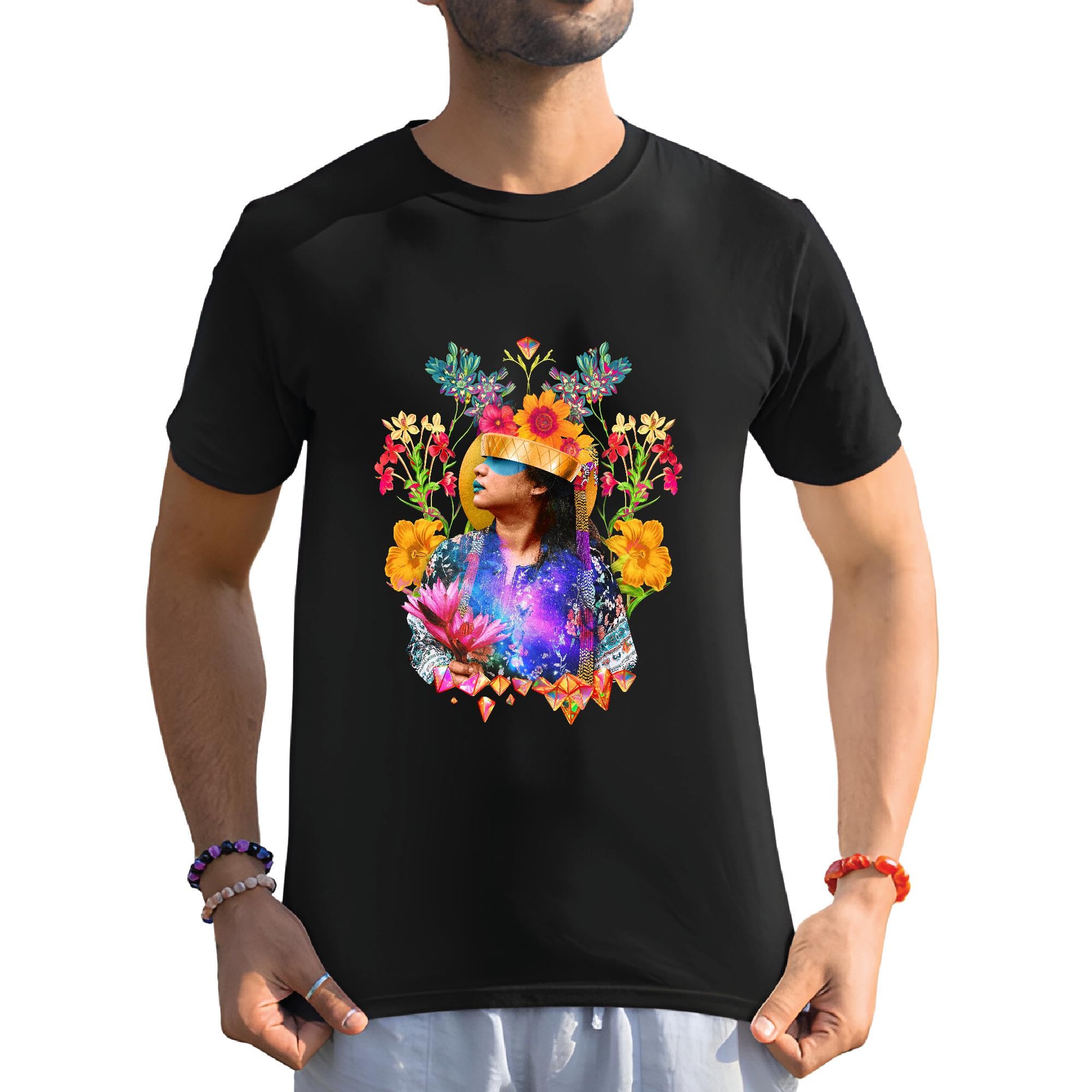 Psychedelic Flower Collage Gift for Girls Unique and Creative Present Idea Men Women Black Multicolor T shirt