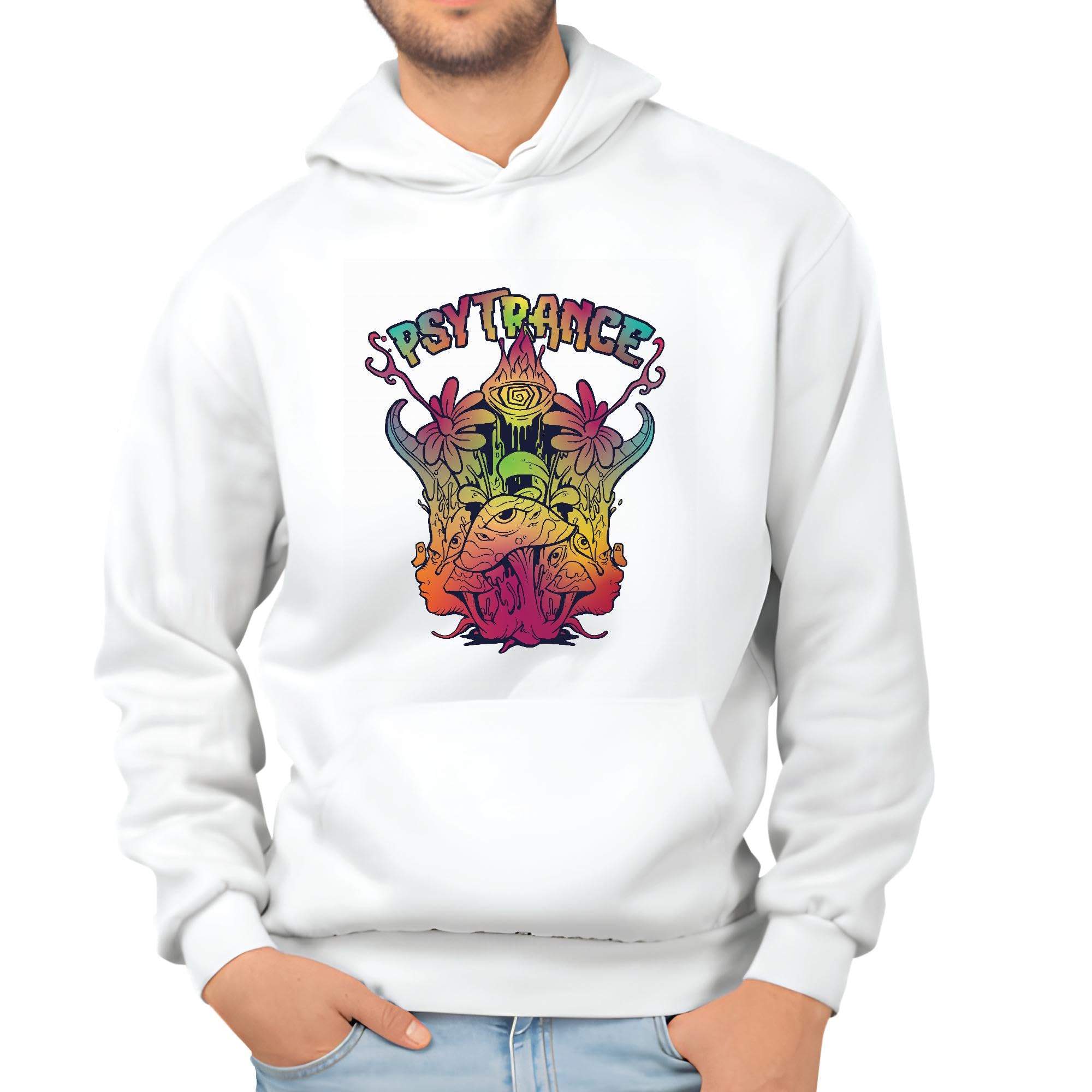 Psychedelic Gift for Psytrance Fans Mushroom Illustration White and Muticolor Unisex Hoodie