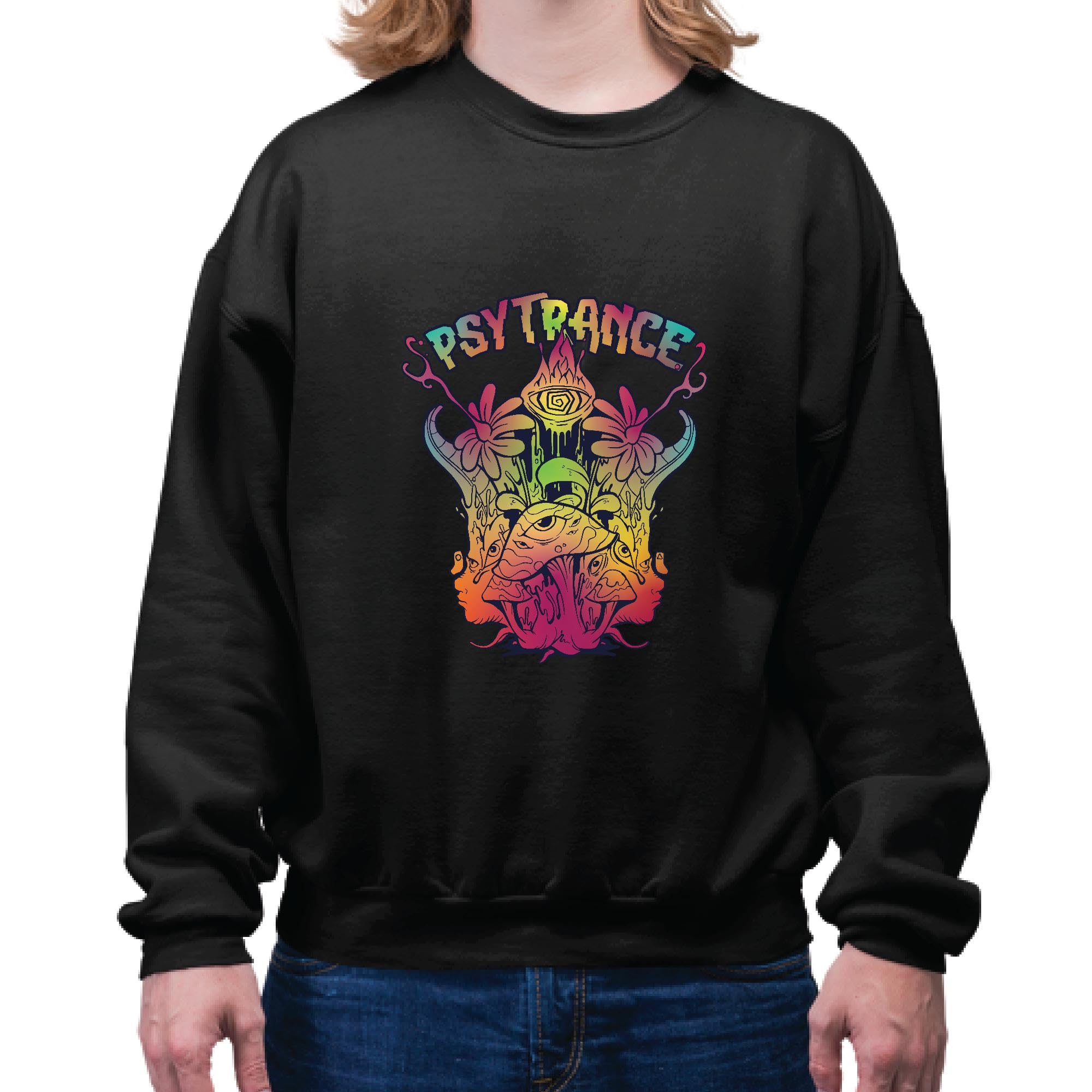 Psychedelic Gift for Psytrance Fans Mushroom Illustration Navy Black Muticolor Unisex Sweatshirt