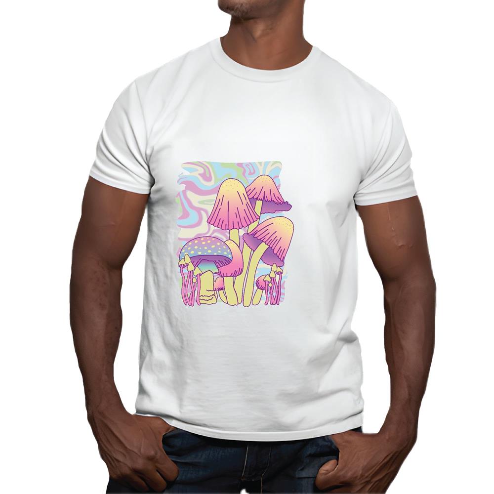 Psychedelic Nature Mushrooms Gift for Nature Lovers and Fungi Fans Men Women White Gray Multicolor T shirt