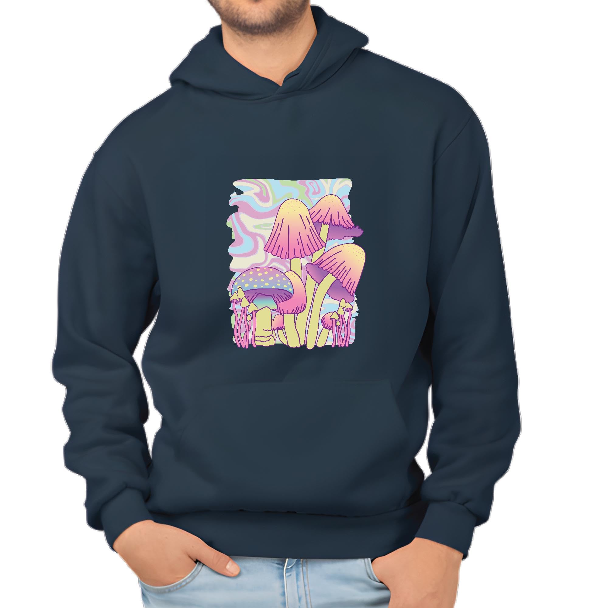 Psychedelic Nature Mushrooms Gift for Nature Lovers and Fungi Fans Navy and Muticolor Unisex Hoodie