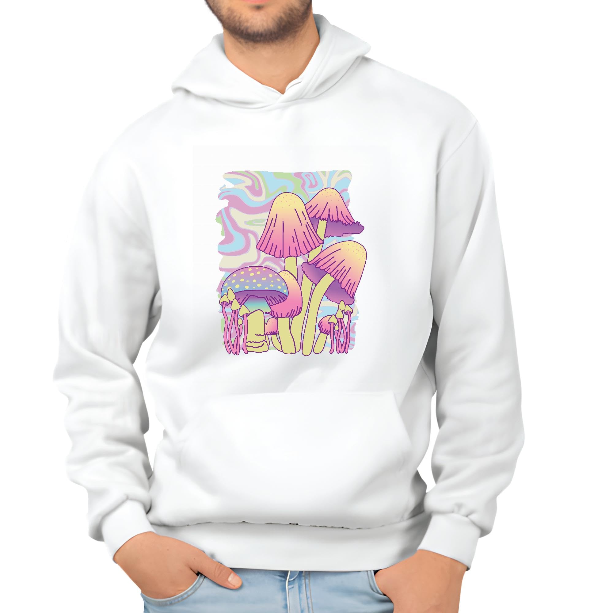 Psychedelic Nature Mushrooms Gift for Nature Lovers and Fungi Fans White and Muticolor Unisex Hoodie