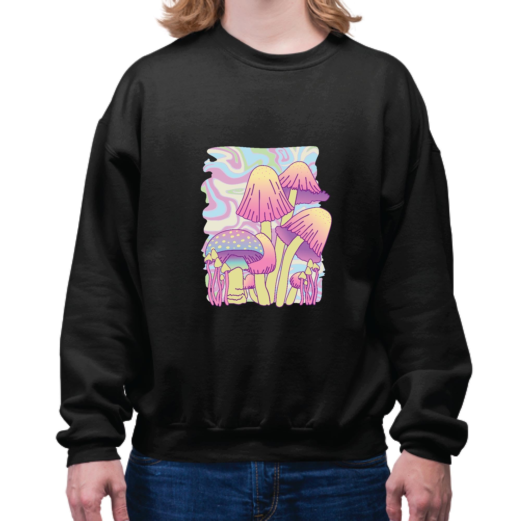Psychedelic Nature Mushrooms Gift for Nature Lovers and Fungi Fans Navy Black Muticolor Unisex Sweatshirt