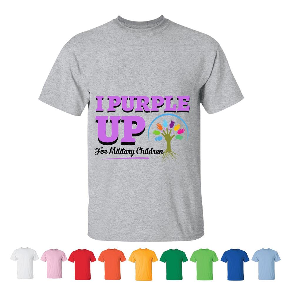 Purple Up Military Kids June Month of the Military Child Men Women White Gray T shirt