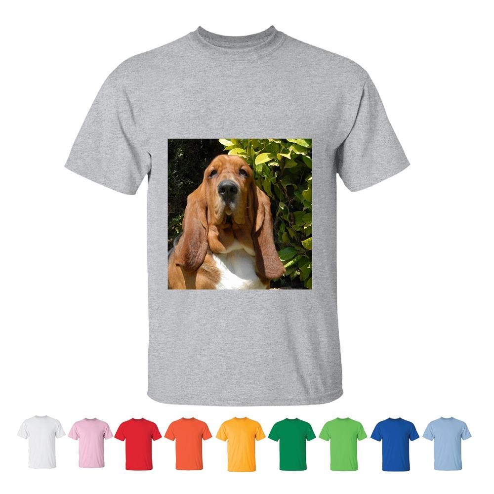 Purebred Bloodhound Dog Picture Dried Grass Photography Men Women White Gray T shirt