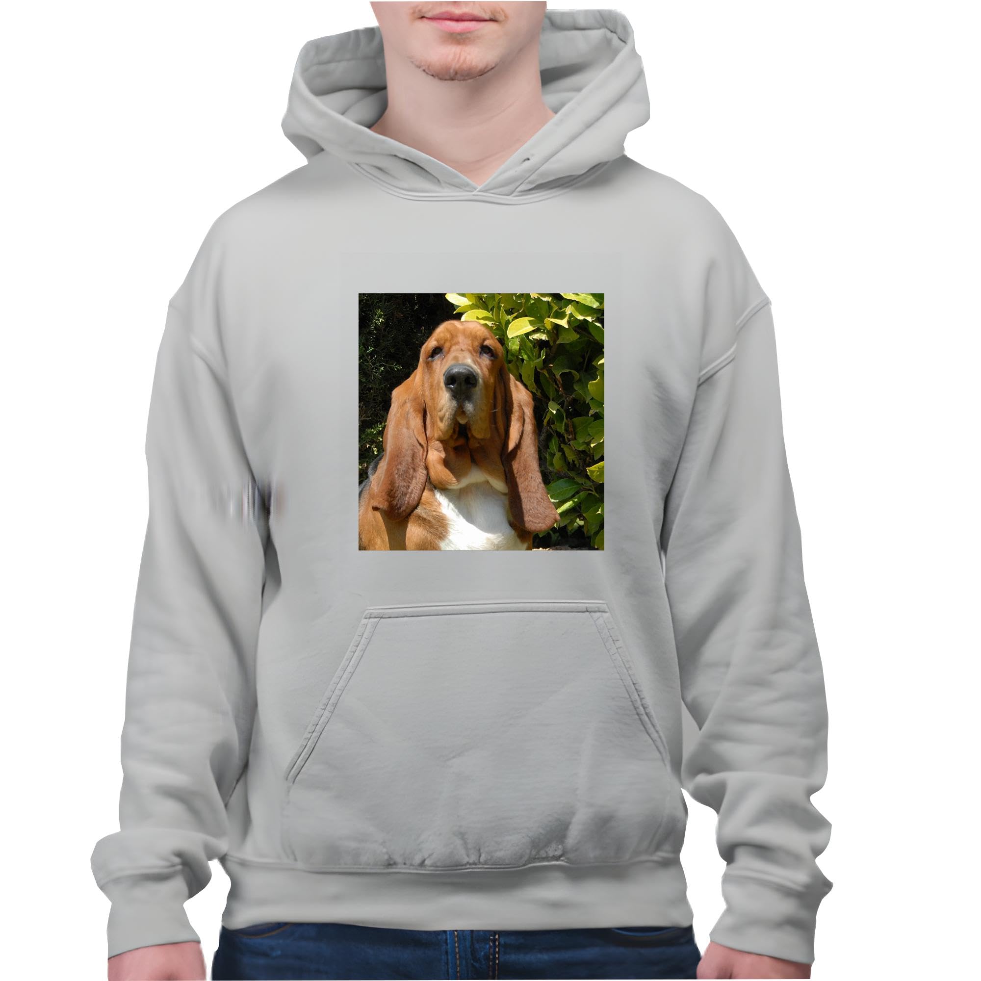 Purebred Bloodhound Dog Picture Dried Grass Photography Gray and Muticolor Unisex Hoodie