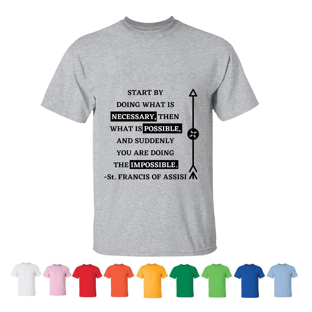 Quote Motivational St Francis of doing impossible inspiration Jesus Christian God lover Men Women White Gray T shirt
