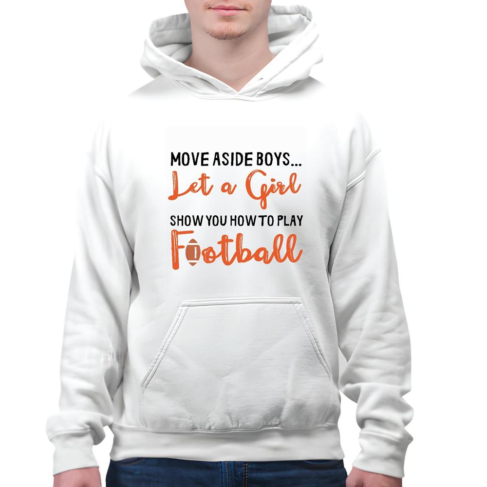 Quote Let A Girl Show You How To Play Football White and Muticolor Unisex Hoodie