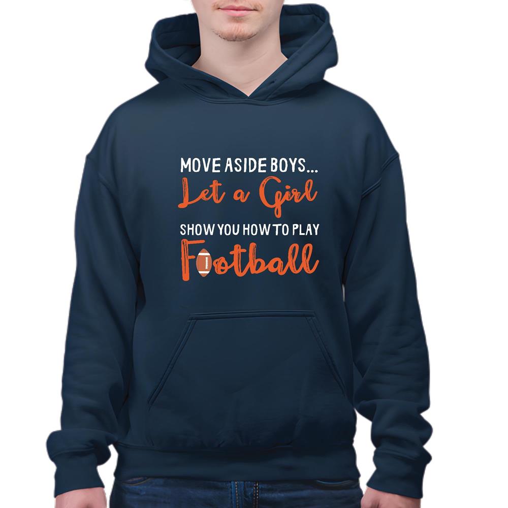 Quote Let A Girl Show You How To Play Football Navy and Muticolor Unisex Hoodie