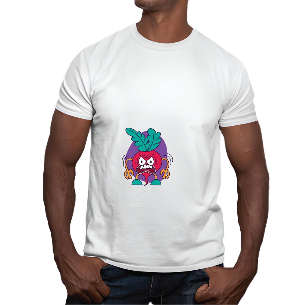 Radish Gift for Funny People An Illustration of An Angry Radish Men Women White Gray Multicolor T shirt