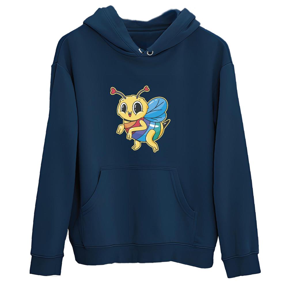 Rainbow Bee Smiling Gift for Kids Cute and Colorful Present for Boys and Girls Navy and Muticolor Unisex Hoodie