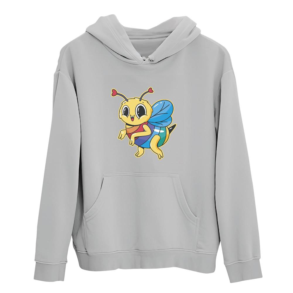 Rainbow Bee Smiling Gift for Kids Cute and Colorful Present for Boys and Girls Gray and Muticolor Unisex Hoodie