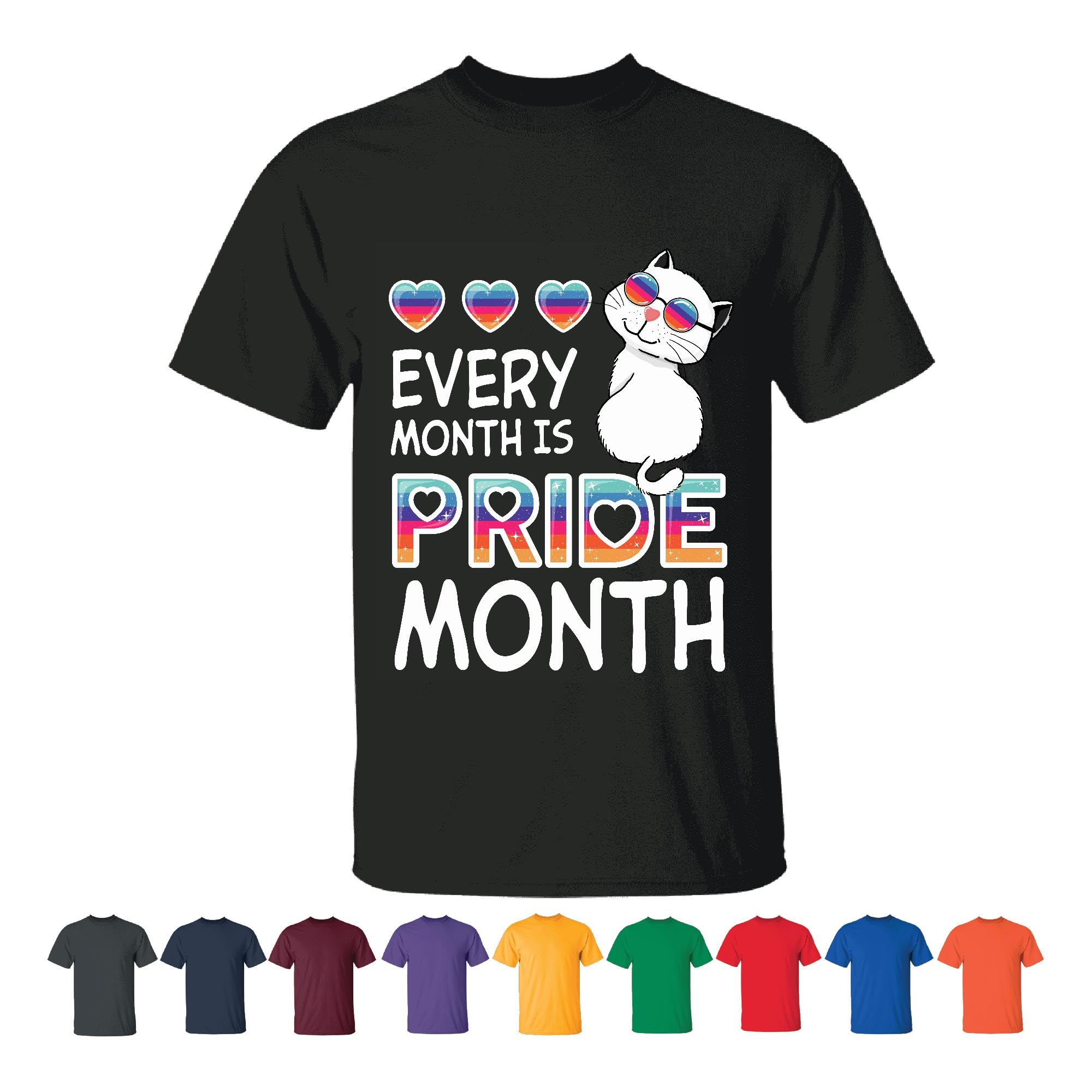 Rainbow Cat T-shirt Gifts for LGBTQ+ Supporters and Allies Men Women Black T shirt