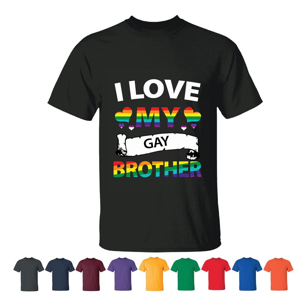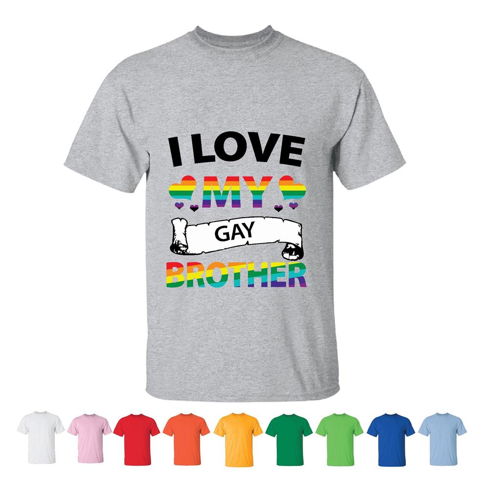 Rainbow heart pattern LGBT matching couple day pride flag I love my Gay brother Men Women White Gray T shirt