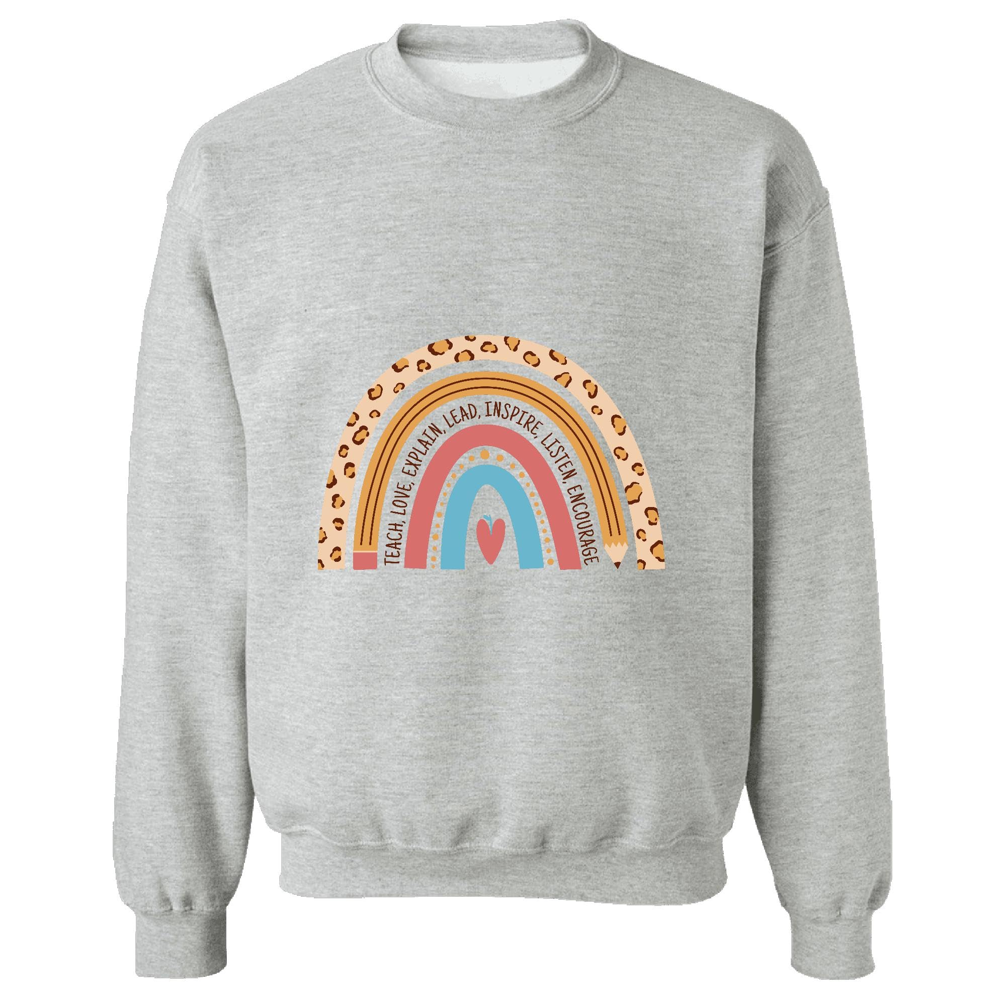 Rainbow inspired Inspirational Gifts Teach Love Explain Lead Inspire Listen Encourage Grey Muticolor Unisex Sweatshirt
