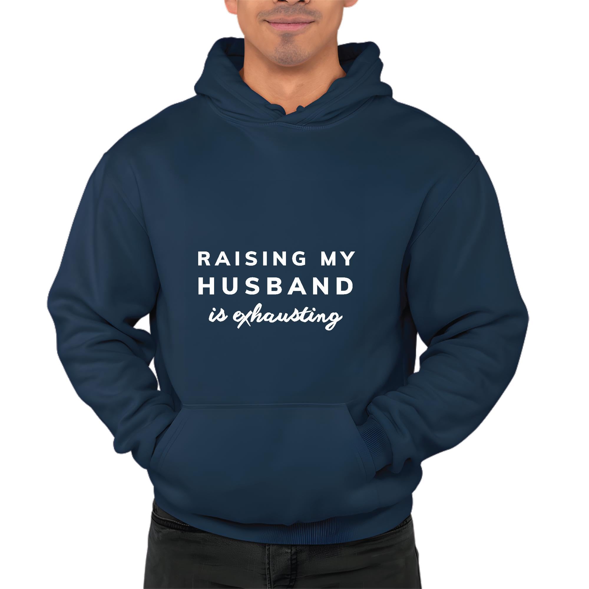 Raising my Husband is Exhausting funny saying from Wife Navy and Muticolor Unisex Hoodie