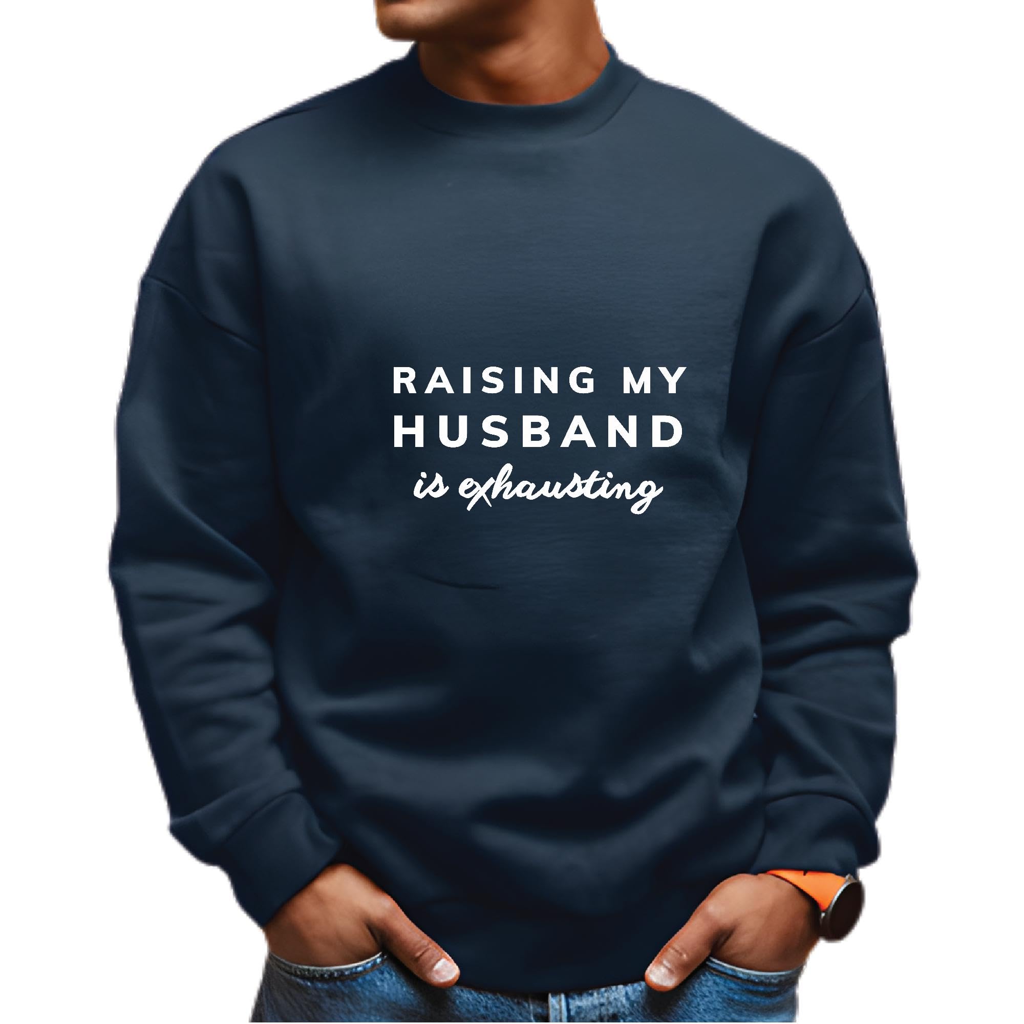 Raising my Husband is Exhausting funny saying from Wife Navy Muticolor Unisex Sweatshirt