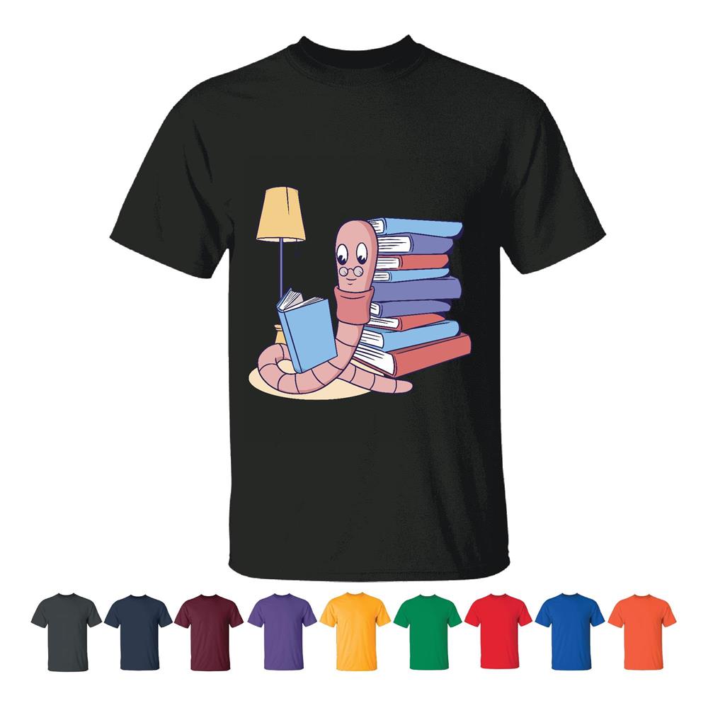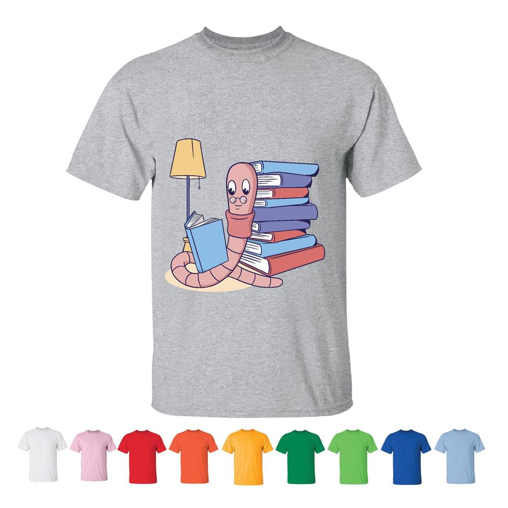 Read Gift for Book Lovers Worm Character Wearing Glasses Book Print Design Men Women White Gray T shirt