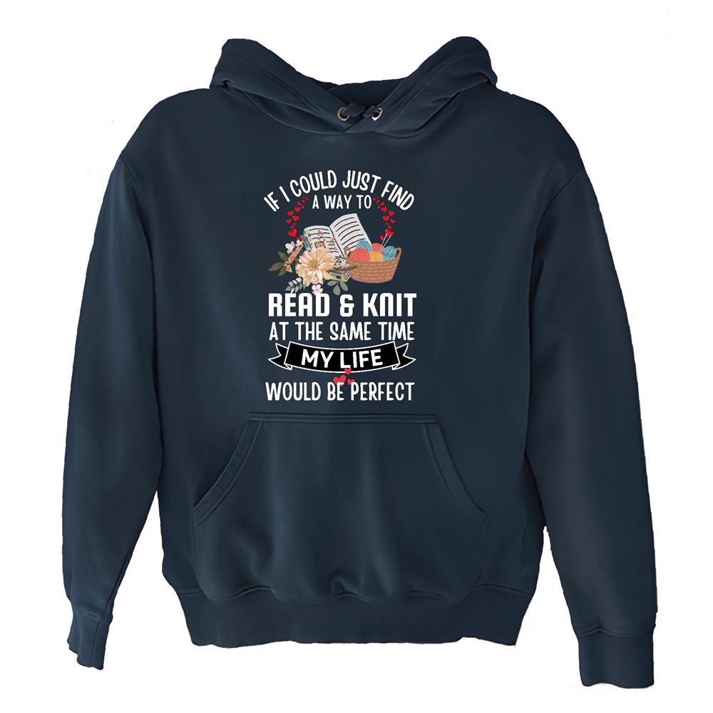 Read and knit my life would be perfect funny for Bookworm Book lover Reader Navy and Muticolor Unisex Hoodie