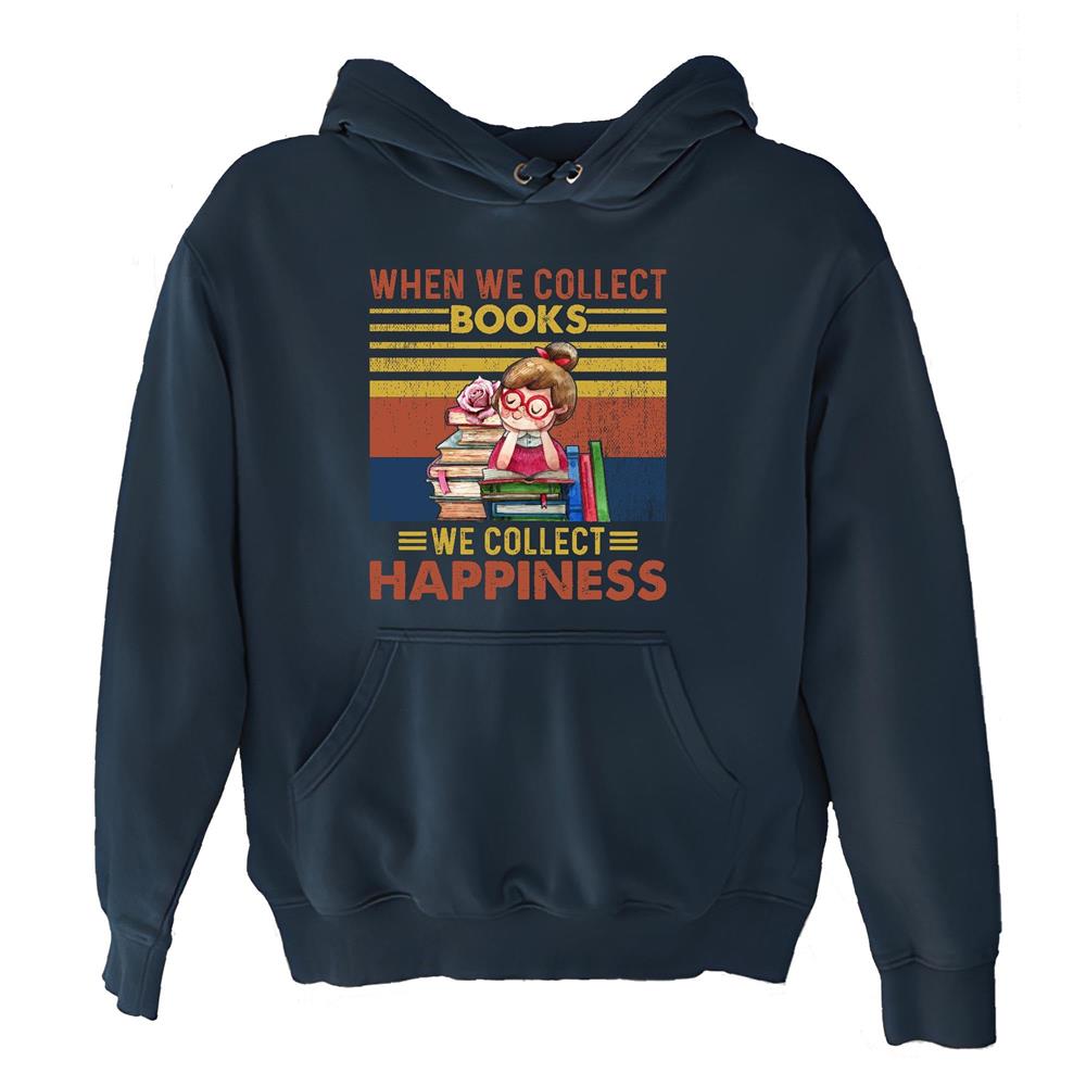 Reader quote when we collect Books we collect happiness for Bookworm Book Lover Navy and Muticolor Unisex Hoodie
