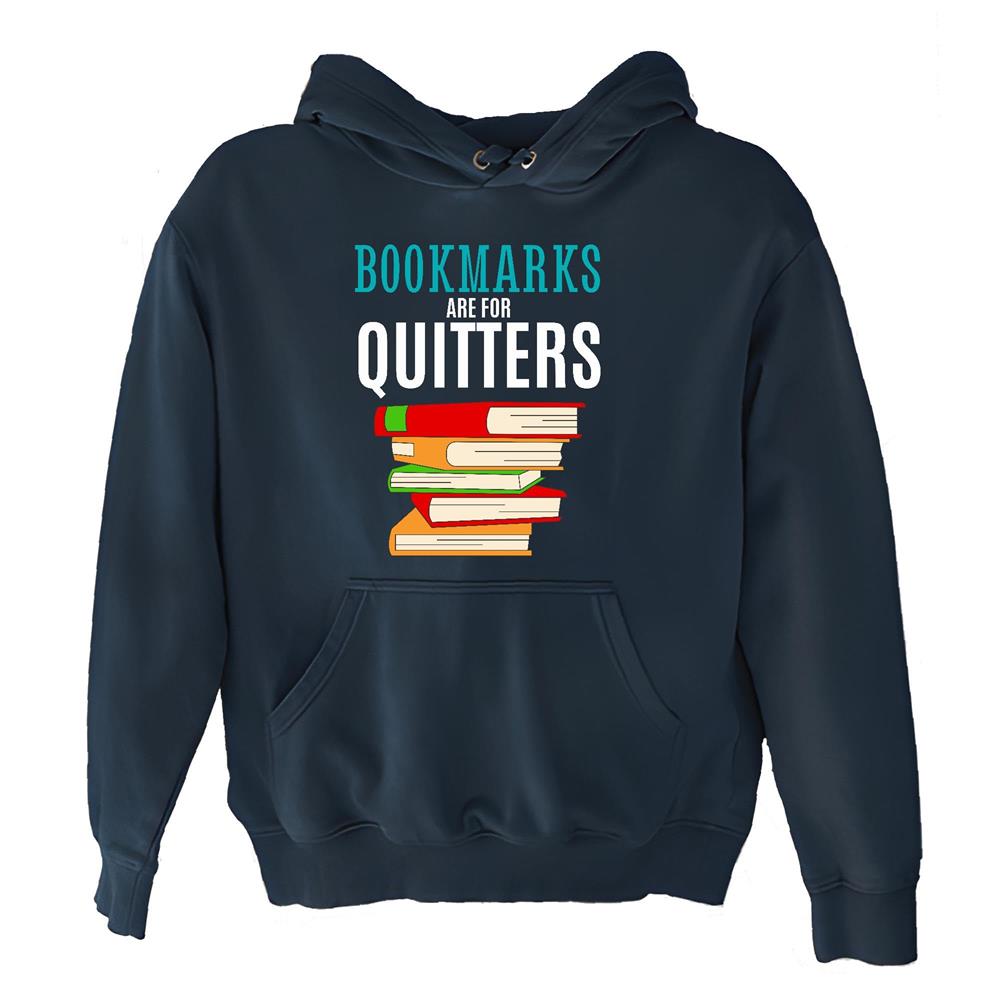 Reader Reading Literary Books Lover Bookmarks Are For Quitters Navy and Muticolor Unisex Hoodie