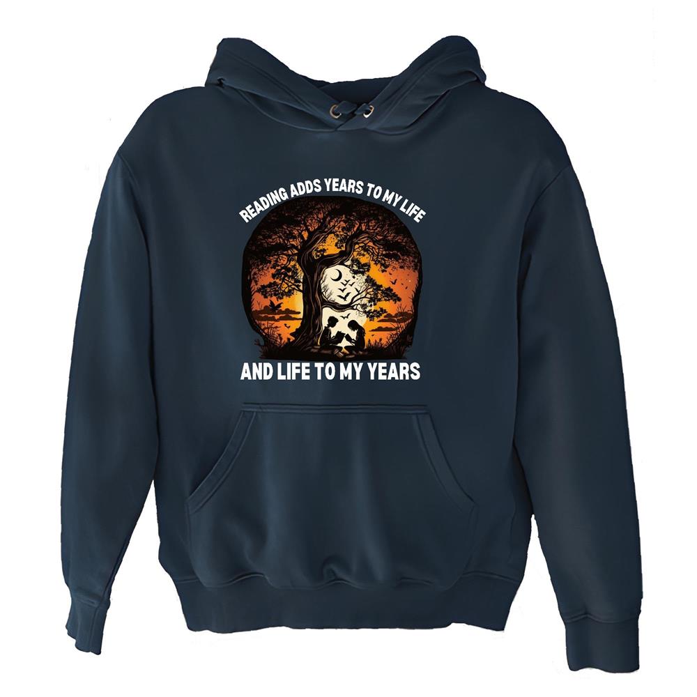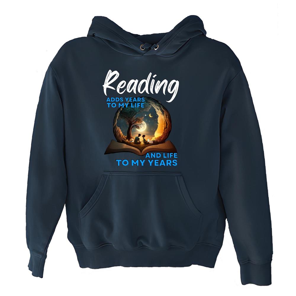 Reading for Book Lover Adds Years to Life and Life to Years Navy and Muticolor Unisex Hoodie