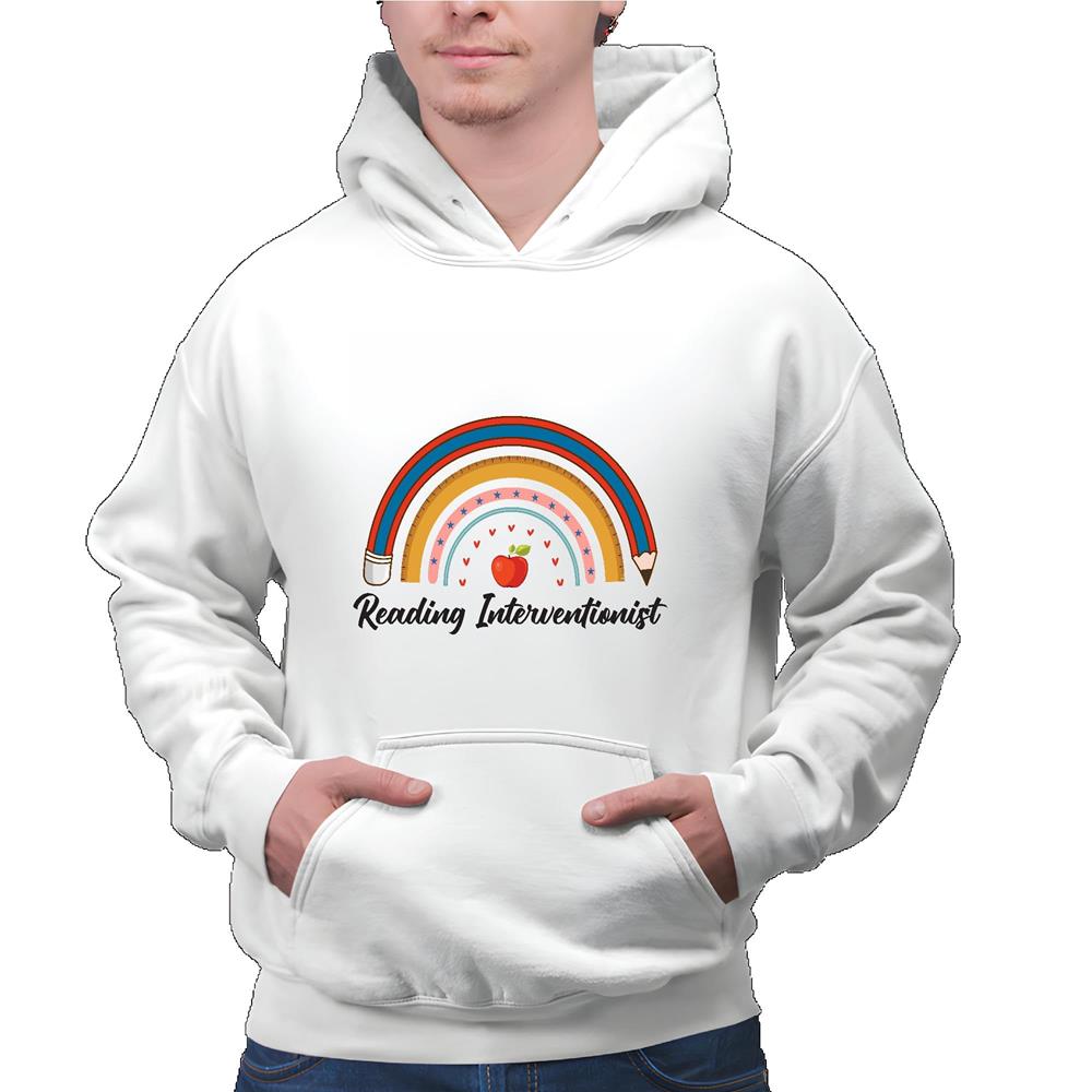 Reading interventionist reading Teacher Specialist rainbow Gray and Muticolor Unisex Hoodie